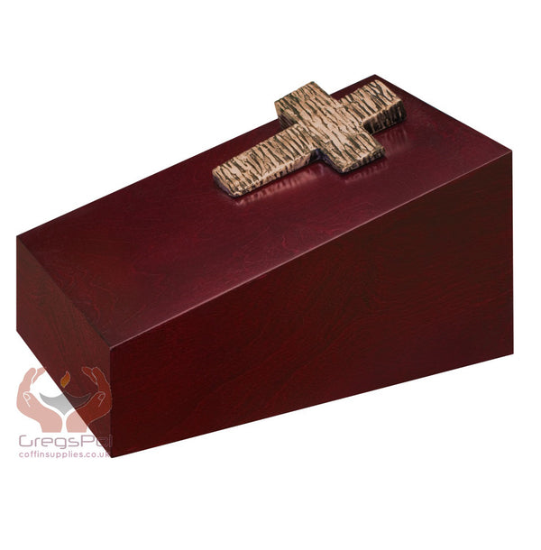 It is an artistic urn that consists of a box for ashes and a figurine of a crying woman. The sensitive element of this urn is this figurine, which is why the arrangement of polystyrene is important. It is arranged in such a way that it does not touch the effigy of a weeping woman.