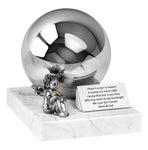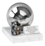 The bottom screw opening of the urn provides a secure and discreet closure, ensuring the ashes are safely preserved. The stainless steel sphere represents strength and protection, encompassing your little girl's spirit with love and care. The marble base adds a touch of sophistication and stability, serving as a solid foundation for the urn's display. Adorned with a silver angel figurine, it embodies the guardian angel watching over your little princess. A memorial plaque on the base allows you to personalize the urn with your own heartfelt text or a special message dedicated to your baby girl.
