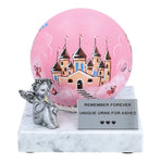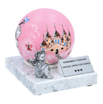 Introducing the Pink Baby Girl Urn: a special and hand-painted urn designed to hold the cherished ashes of a little girl. This exquisite memorial piece is crafted with love and attention to detail, serving as a beautiful tribute to your beloved princess. Made with a combination of a stainless steel sphere and a marble base, this urn showcases both elegance and durability.