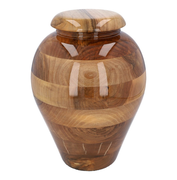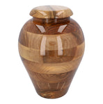 Beautiful cremation urn made of walnut. Hand-turned, perfect for the ashes of an adult. The richness of colors and the grain pattern of natural wood makes a huge impression. An urn designed by mother nature herself. High gloss lacquered urn.
