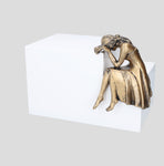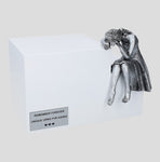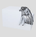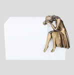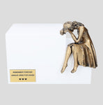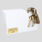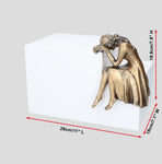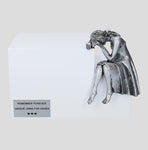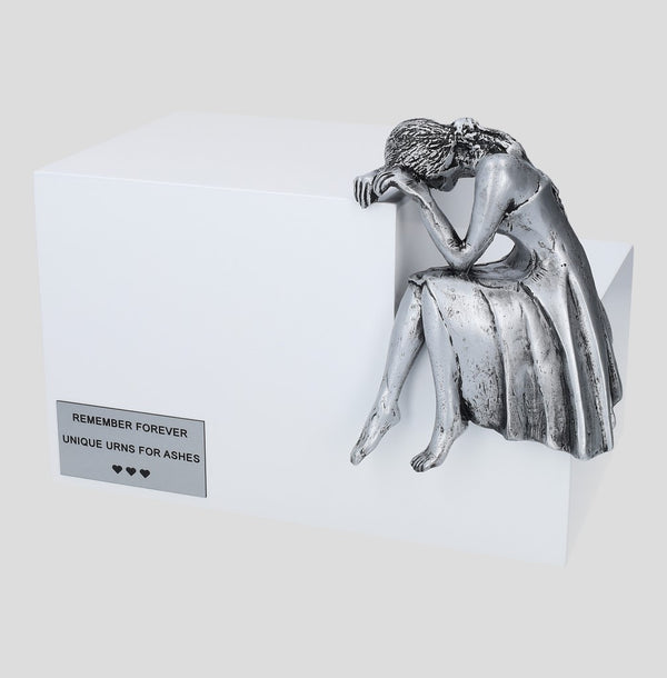 It is an artistic urn that consists of a box for ashes and a figurine of a crying woman. The sensitive element of this urn is this figurine, which is why the arrangement of polystyrene is important. It is arranged in such a way that it does not touch the effigy of a weeping woman.