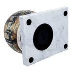 Stainless steel cremation urn in the shape of a ball. A durable combination of a marble base and a stainless steel sphere where the ashes are placed.