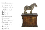 The urn has brass handles and wreath shaped decorations. Horse statue is made from cold caste bronze .