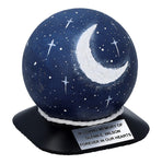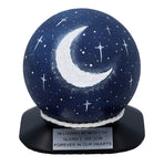 This mini funeral urn is a delicate and symbolic keepsake, designed to hold a small amount of ashes. Its unique design combines a hand-painted stainless steel ball, decorated with a moon and stars motif, with a solid ABS base. The moon and stars have been associated with peace, eternity and spiritual presence for centuries, making this urn a beautiful symbol of remembrance for a loved one.