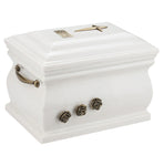 It is an artistic urn that consists of a box for ashes and a figurine of a crying woman. The sensitive element of this urn is this figurine, which is why the arrangement of polystyrene is important. It is arranged in such a way that it does not touch the effigy of a weeping woman.