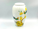 Constructed from durable fiberglass and finished in a white color, this urn provides a striking contrast to the delicate painted birds.