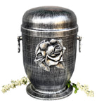 If you are looking for urns for ashes for adults you will be able to browse through some of the most diversified styles and materials here. However, as you will be able to see, these funeral urns are works of art and not merely storage containers. This particular cremation urn is truly beautiful. Made from metal but with a very unique grey or brown colour, and with a pretty rose emblem on the front, this urn is really going to serve as a dignified resting place for your loved one’s ashes.