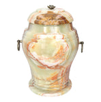 Our Unique Onyx Cremation Urn is a graceful and distinctive choice for honoring the memory of your loved one. Meticulously crafted from exquisite onyx stone, each urn is a one-of-a-kind piece, featuring its natural and mesmerizing patterns.