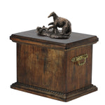 Beautiful solid  wood caket with Dog Statue Borzoi on the top.