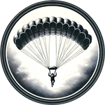 The urn has a classic box shape, available in black or white, with gently rounded edges. On the front, there is an engraved image of a paratrooper, symbolizing bravery, determination, and a passion for flight.