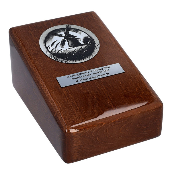 Like the wind moving the wings of a windmill, life is full of movement, change and the inevitable passing of time. A wooden urn with a windmill motif is a unique way to honour the memory of a loved one who loved rural tranquillity, nature and the harmony of the surrounding world.