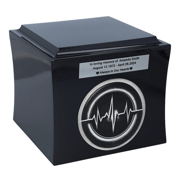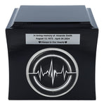 Urn with Lifeline motif symbolic urn with heartbeat chart