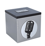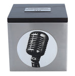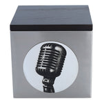 The cremation urn with microphone is an unusual option for those who loved music, singing or the stage. Made of stainless steel and wood, it presents an elegant and modern form. The front of the urn is decorated with a graphic depicting a classic microphone, symbolically paying tribute to artists, singers and lovers of sound.