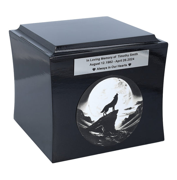 Honor the memory of a loved one with the Wolf-Themed Cremation Urn, a symbol of strength, independence, and an untamed spirit. Crafted from premium solid wood, this urn features a beautifully engraved lone wolf, representing resilience, courage, and freedom. A perfect tribute for those who walked their own path in life, embracing the wild and the unknown.