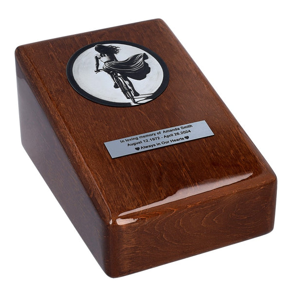 More than an urn, it is a keepsake full of symbolism, reminding us of the free spirit, energy and beautiful moments spent on two wheels. Perfect for the woman who loved her bike and a life on the move.