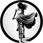 It is a box-shaped wooden urn, available in elegant black or white, with gently rounded edges. Its front features an engraved graphic of a woman riding a bicycle, reflecting the spirit of adventure, joy and lightness that the bicycle gave her every day.