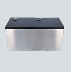 Double cube-shaped stainless steel box, lined inside with elegant material from the top closed with a wooden lid. It is designed to keep the remains of two people. A compartment inside the box prevents the ashes from getting mixed up. We recommend storing the ashes in a plastic bag.