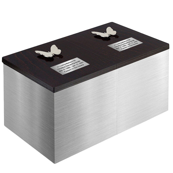 Double cremation urn for married or parents. „Double Silver Box” – Exclusive Stainless Steel Companion Urn
