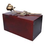 Memorials are complete when you place the ashes of your loved one in an urn, so as to treasure them forever. This beautiful handmade urn is made from wood and has a large bronze plated rose along the front part. This cremation urn for ashes is simple but elegant. This is important for a funeral urn which needs to look formal but at the same time inspire the memories of your loved one wherever you place it in your home.