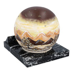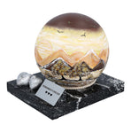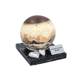 Stainless steel cremation urn in the shape of a ball. A durable combination of a marble base and a stainless steel sphere where the ashes are placed.