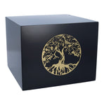 Black casket for human ashes with butterflies. Unique cremation urn for adult