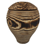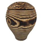 This is a time-consuming process. First, the wood is fired by a naturally triggered fire. Then the burnt wood is hardened in cold water and then dried. Dust and tanning residues are removed from the surface of the boards. Then the wood is carefully brushed and treated with natural oil. The whole process enhances the natural beauty of the urn and emphasizes the texture of the wood.