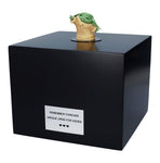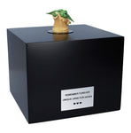 Introducing the Galaxy Guardian Baby Yoda Cremation Urn – a heartfelt tribute to honor the memory of your loved one in a truly extraordinary way. Crafted with utmost care and artistry. This star wars elegant black wooden urn features a delicate and endearing Baby Yoda figurine gracing its top.
