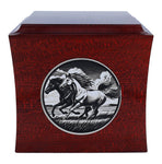 Honoring the memory of a loved one with a passion for horses requires a special kind of tribute. Our Urn with Horses is a beautifully crafted mahogany-colored wooden box, designed to serve as a dignified and meaningful memorial.