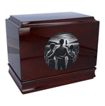 Made from solid mahogany wood, this urn combines durability with timeless beauty. The rich, deep tones of the mahogany provide a dignified and elegant appearance, while the expert craftsmanship ensures a lasting memorial. The intricate engraving adds an artistic touch that honors your mother's memory in a meaningful way.