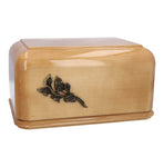 With smooth finishes and glossy looks, wooden urns look very elegant and stylish. Embellishments are often included to adorn the cremation urn even further. Common add-ons include crosses, roses, and handles. Wooden urns can also include an element of personalisation, such as with carvings.