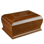 The ashes of your loved one who passed away deserves a resting place that is dignified and decorous. That is just what we aim to offer you with our extensive range of cremation urns. Solid wood casket urns are very popular choices as they strike a perfect balance between an elaborate design made from solid wood, which is both durable as well as aesthetically pleasing. This particular wooden urn is a bestseller among our range because it has a unique shape which is very formal and elegant. Its design is inspired by the traditional casket, but it is not as elongated as a normal casket so it looks nicer. The space within it is ideal to have it used as a funeral urn for adult ashes. We also have various other types of wooden funeral urns in stock, which you may find available for your perusal on our website.