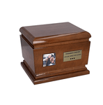 The front of the urn includes space for a memorial photograph, allowing for a personal and meaningful remembrance. An optional engraved memorial plaque with custom text can be added, creating a unique and deeply personal tribute.