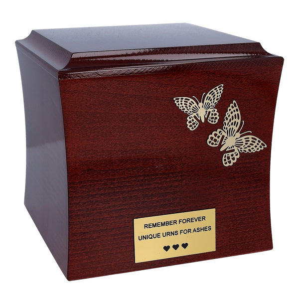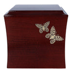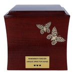 Wooden urn crafted with precision. It is more than a mere container; it's a symbol of metamorphosis and the enduring beauty of memories. The butterflies delicately grace the surface, representing the profound changes in life and serving as a poignant reminder of the everlasting spirit your loved one brought into your life.