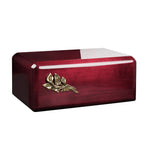 The ashes of your loved one who passed away deserves a resting place that is dignified and decorous. That is just what we aim to offer you with our extensive range of cremation urns. Solid wood casket urns are very popular choices as they strike a perfect balance between an elaborate design made from solid wood, which is both durable as well as aesthetically pleasing. This particular wooden urn is a bestseller among our range because it has a unique shape which is very formal and elegant. Its design is inspired by the traditional casket, but it is not as elongated as a normal casket so it looks nicer. The space within it is ideal to have it used as a funeral urn for adult ashes. We also have various other types of wooden funeral urns in stock, which you may find available for your perusal on our website.