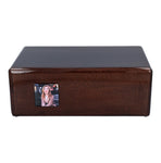 The front of the urn features a space for a memorial photograph of the deceased, allowing for a deeply personal tribute. An optional engraved memorial plaque with custom text can be added to further personalize the urn and honor the memory of a loved one.