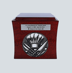 Crafted from solid wood, this urn combines durability with aesthetic appeal. The rich mahogany color enhances the natural beauty of the wood, providing a warm and dignified look. The expert craftsmanship ensures that this urn will serve as a lasting memorial, preserving the memory of your loved one with grace and dignity.