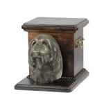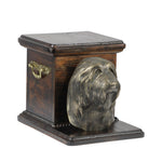 Beautiful wood casket cremation urn for dog’s ashes with standing statue Bearded Collie (12)