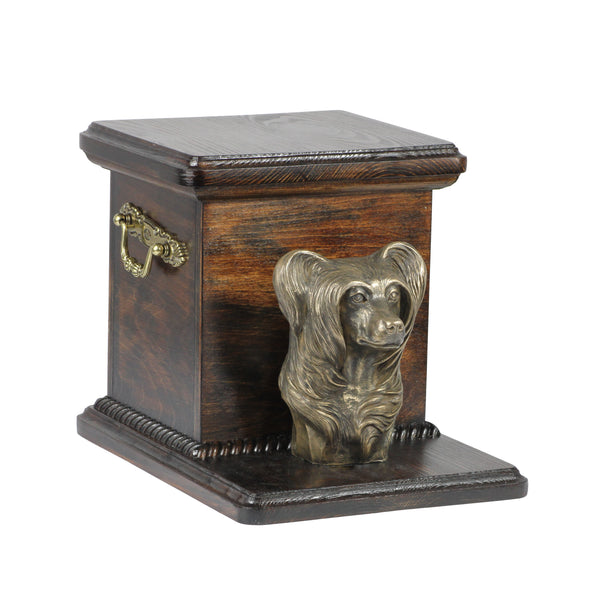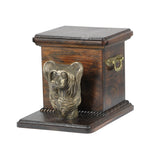 This beautiful dog ashes box is handcrafted by skilled professionals from solid birch wood and topped with a cold-cast bronze statue of the same breed of dog your departed pet. The solid wood memorial casket for pets can be personalised with a plaque with your choice of wording for no extra charge and this wooden urn for ashes is large enough to hold your pet’s collar or your pest favourite toy as well as the dog’s ashes.
