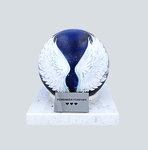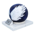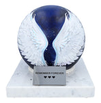 Cremation urn srafted with meticulous attention to details. This urn features a hand-painted stainless steel sphere, showcasing the graceful curvature of angel wings as they soar across a celestial backdrop of twinkling stars.