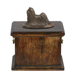 This beautiful dog ashes box is handcrafted by skilled professionals from solid birch wood and topped with a cold-cast bronze statue of the same breed of dog your departed pet. The solid wood memorial casket for pets can be personalised with a plaque with your choice of wording for no extra charge and this wooden urn for ashes is large enough to hold your pet’s collar or your pest favourite toy as well as the dog’s ashes.