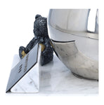 Stainless steel cremation urn in the shape of a ball. A durable combination of a marble base and a stainless steel sphere where the ashes are placed.
