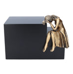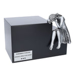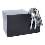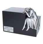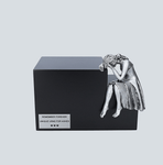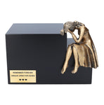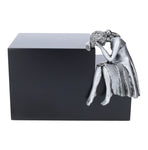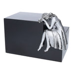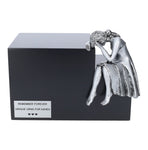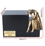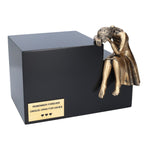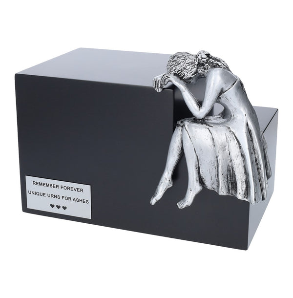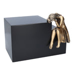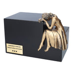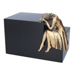 It is an artistic urn that consists of a box for ashes and a figurine of a crying woman. The sensitive element of this urn is this figurine, which is why the arrangement of polystyrene is important. It is arranged in such a way that it does not touch the effigy of a weeping woman.