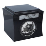 Saying goodbye to a loved one is a moment full of emotion and memories. A wooden urn for the driver is a unique way to honour a passion for driving and life on the road. Created for people for whom a truck was not only a job but also a lifestyle, a symbol of freedom and endless travel.The urn has a classic box shape, available in black or white, with gently rounded edges. On its front is an engraved graphic of a truck, reflecting the love of the road and the driving profession. Just above the graphic is a personalised plaque on which you can engrave a name, dates or a personal dedication, making the urn even more special and personal.The ashes are placed inside the urn through the removable bottom, which is securely bolted in place, ensuring durability and safe storage.The wooden urn for the driver is not only a resting place, but also a tribute to the road he travelled and the life he loved. It is a symbol of the never-ending journey that lives on in the hearts of loved ones.